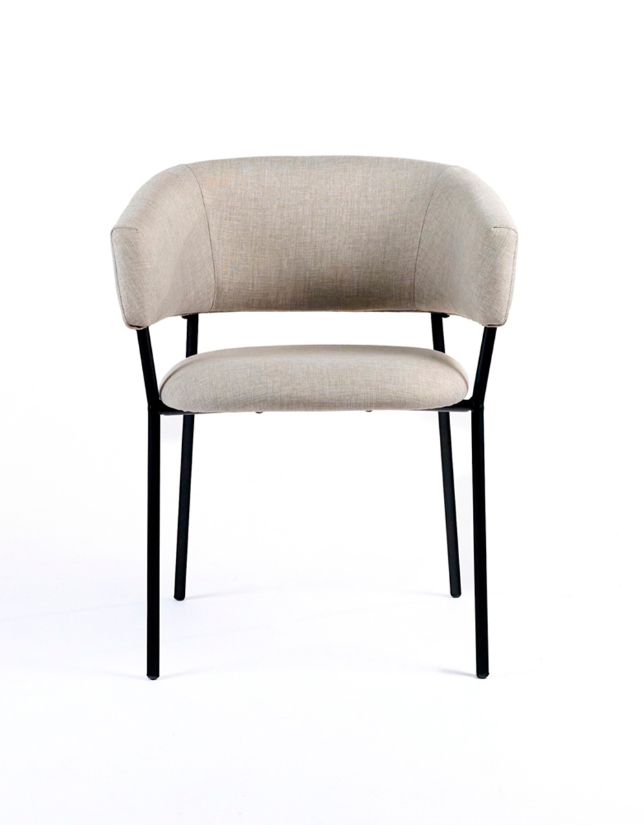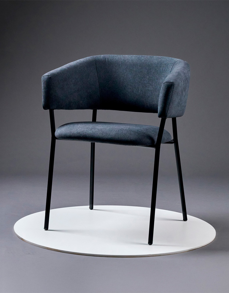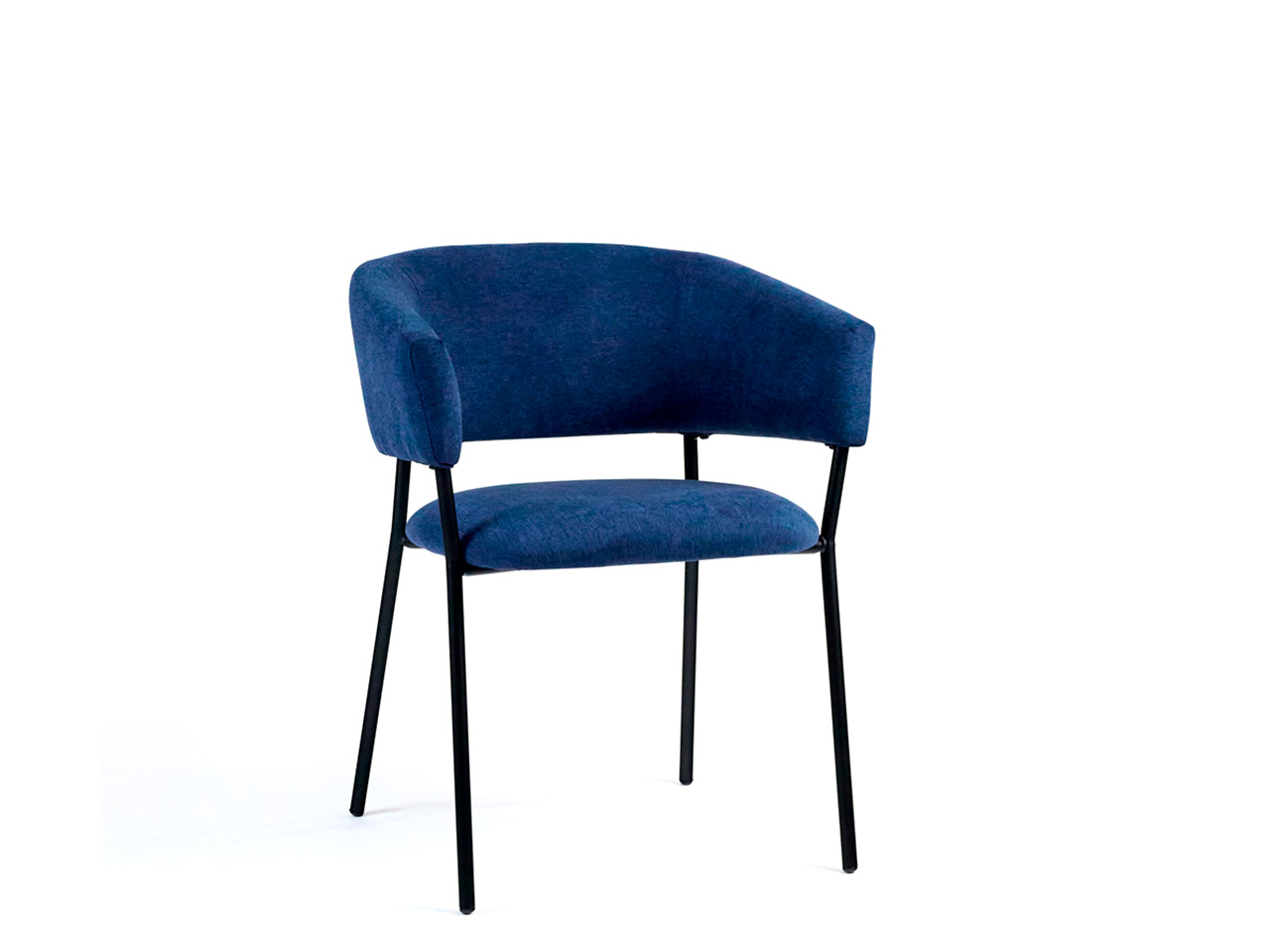 Cuenta con un asiento amplio, todo tapizado para ofrecer máxima comodidad. Su estructura de caño negro aporta liviandad visual y un toque moderno, lo que la convierte en una opción ideal tanto para comedores como para espacios de reunión.